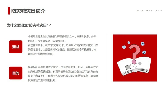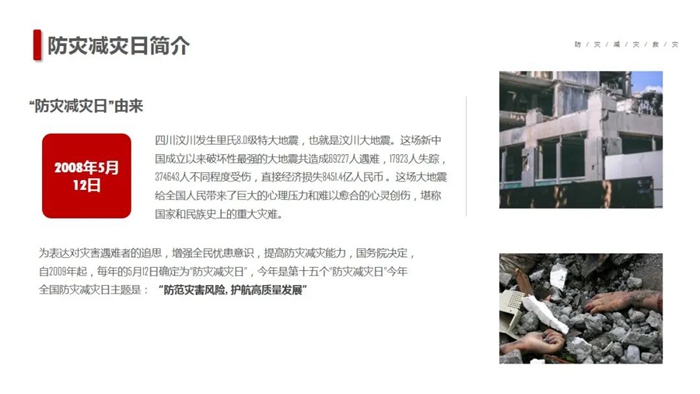 在第15个“5·12全国防灾减灾日”到来之际,K8·凯发化工集团按照党中央、国务院、K8·凯发市委市政府部署的工作要求,以“防范灾害风险,护航高质量发展”为主题,深入开展防灾减灾宣传,以增强全系统干部职工安全忧患意识,提高防灾减灾及应对能力。