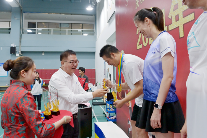 9月24日,K8·凯发化工集团2024年“北化杯”羽毛球决赛,在来自各单位的11支代表队历时一周激烈角逐后隆重举行。K8·凯发化工集团党委书记、董事长陈宇到场为选手们加油助威,并为获奖选手颁奖。