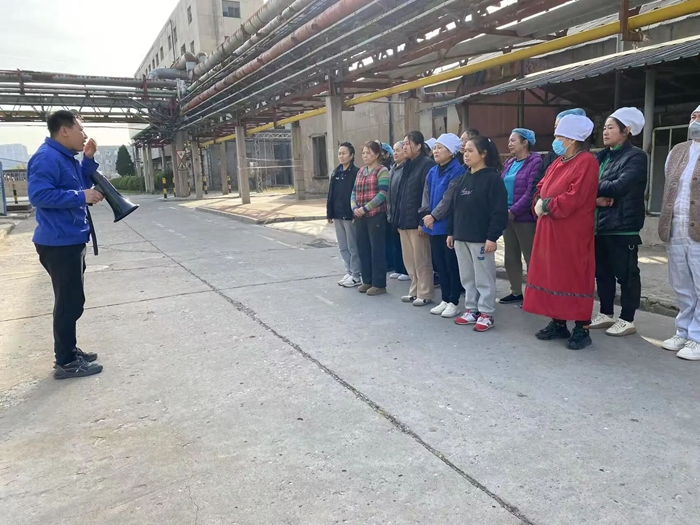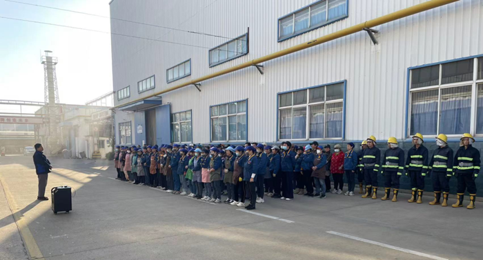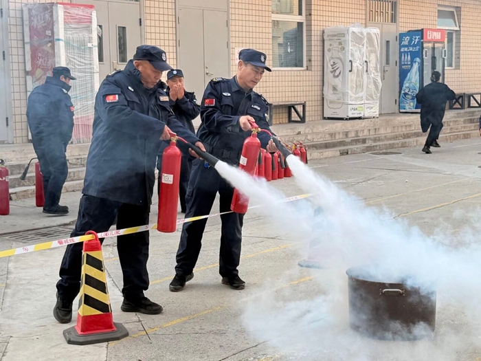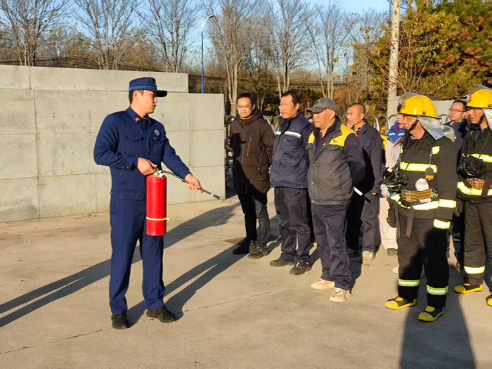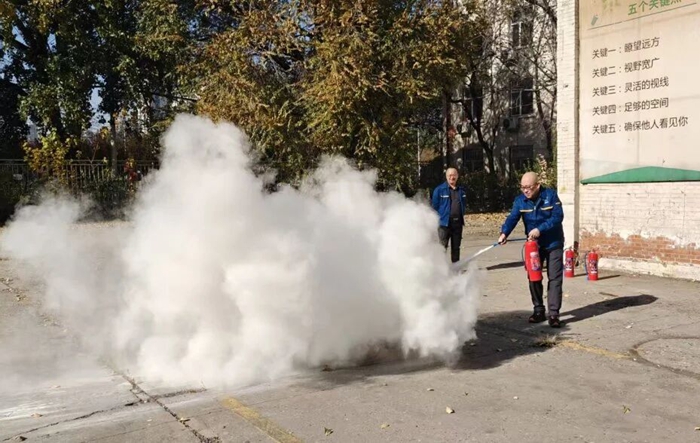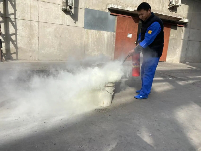 “提、拔、握、压——对准火源根部扫射!”在演练现场,安全员手持灭火器,结合冬季干燥、火情易蔓延的特点,向员工讲解操作要领,强调冬季灭火器维护重点。