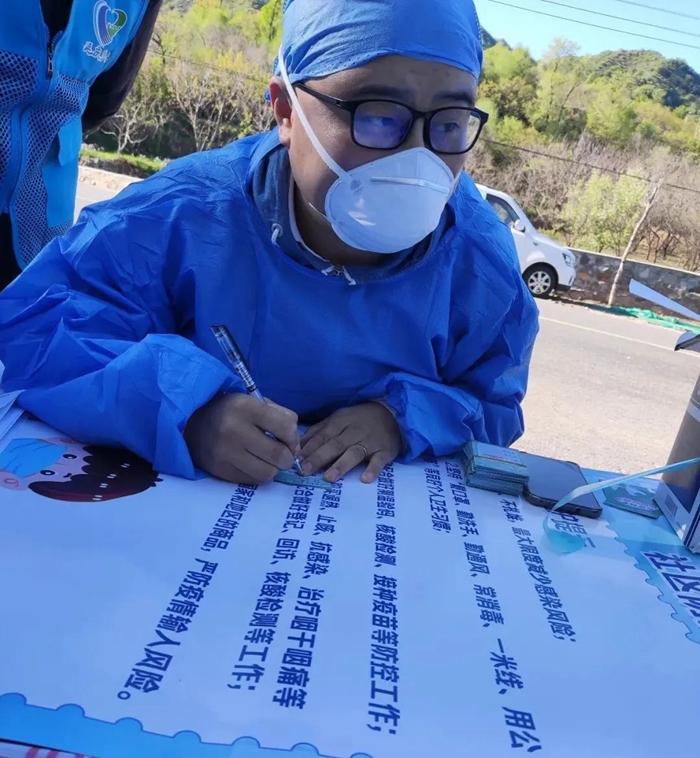 共产党员赵新武参加延庆区大庄科乡里长沟村核酸检测志愿服务。