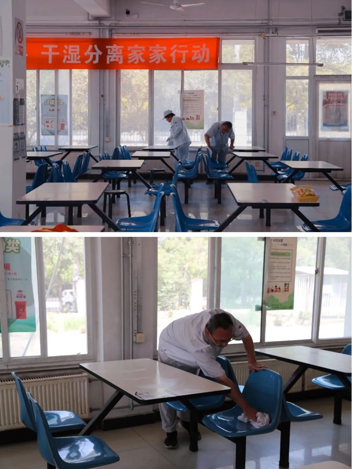 打扫完后,大家还对就餐环境进行了消毒,确保做到消杀“全覆盖、无死角、无盲区”,为职工提供健康的就餐环境,全力保证全园职工的健康安全。