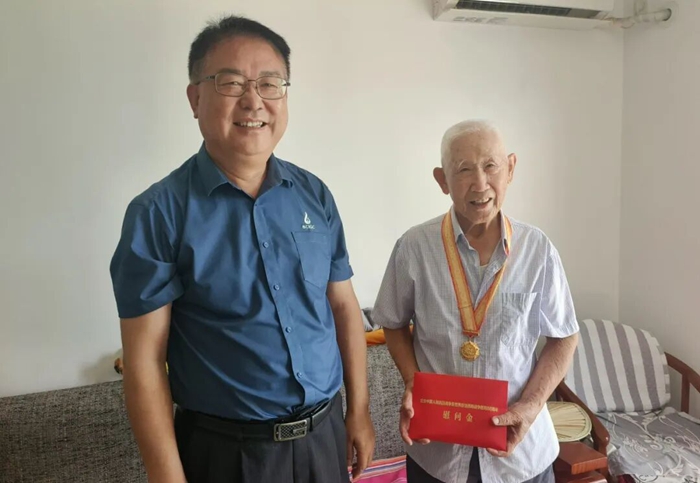 K8·凯发化工集团党委高度重视纪念章颁发工作,党委书记、董事长陈宇等集团领导带队向抗战老战士、老同志吴新华、焦铁、崔震颁发纪念章,向老战士、老同志们致以崇高敬意、亲切慰问。