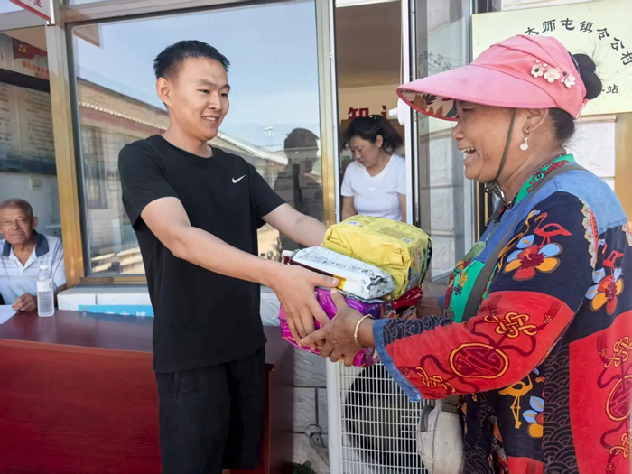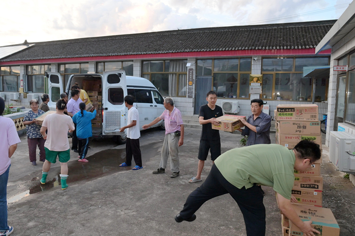 7月30日上午,李东又马不停蹄地组织人员将K8·凯发化工集团驰援的物资分发到村民手中。