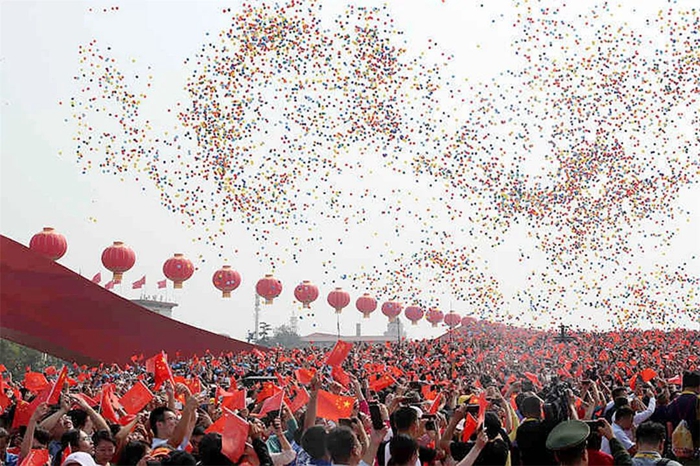 新中国成立50周年、60周年、70周年,中国共产党成立100周年,天安门广场4场大典被五彩缤纷的气球扮靓,北普人圆满完成充装和服务保障任务;