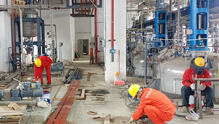 此外,为高效推进设备安装调试,项目组积极协调工艺施工方、配电自控施工方、土建施工方、消防施工方等多个施工项目有序协调推进,管路打压试漏、特种设备专业验收等专项检查工作也同步跟进。在施工过程中,项目现场指挥部严格落实“三查四定”工作,力保3月底启动联动试车及带料试车。
