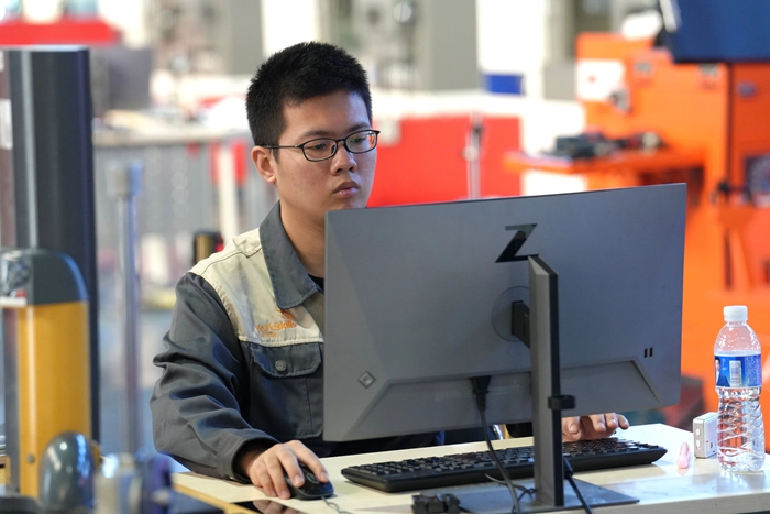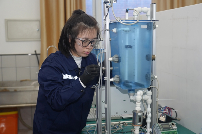 紧张而热烈,严肃而激昂——技师学院世界技能大赛集训基地内萦绕着技能逐梦、匠心筑梦的北化强音。